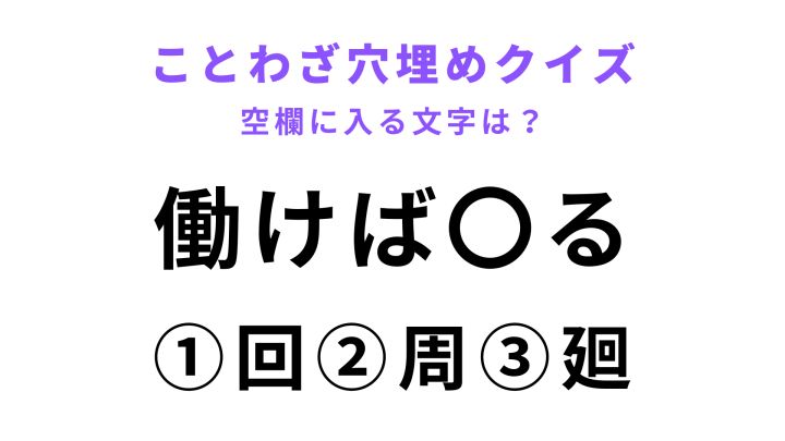3. 【働けば〇る】空欄に文字を入れてことわざを完成させて!