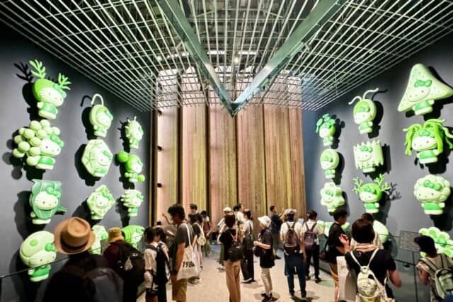 注目は、日本館ならではのサプライズ演出。例えば、藻類でできたハローキティが登場。藻の力で未来の食料問題などに挑む研究を、ハローキティが体現するユニークな展示に思わず笑顔になってしまいます。