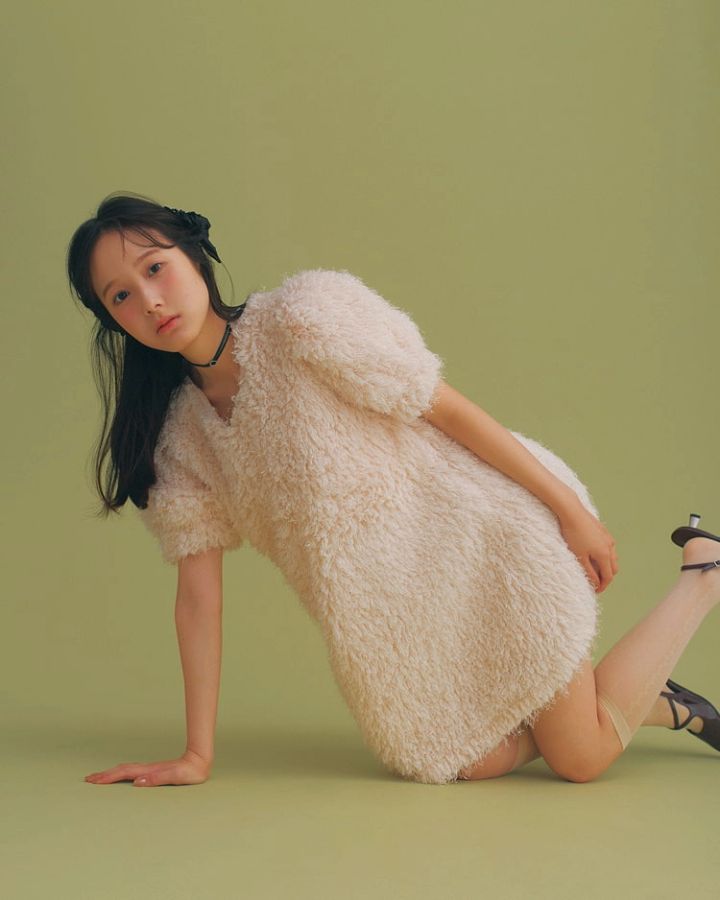 もこもこ半そでワンピース 7,890円/ROSE AURA バラヘアクリップ(2個セット)7,700円/The Girls Society チョーカー 3,780円/アビステ ハイソックス 880円/靴下屋(Tabio)ミュール 8,900円/チャールズ&キース(チャールズ&キース ジャパン)