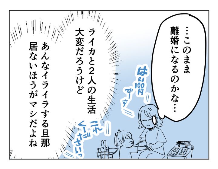 今回の主人公は30代のクルミさん。旦那のタカユキさんと、3歳になる娘のライカちゃんと3人暮らしをしています。ここ最近Vtuberの「てれすちゃん」にドハマりしているタカユキさん。推しへの愛が日に日に増し、ついには家族よりもてれすちゃんを優先するように。てれすちゃんの配信に間に合わないからと怒り散らす姿を見て、クルミさんは「もう一緒にいられない」と判断。別居を申し出ました。