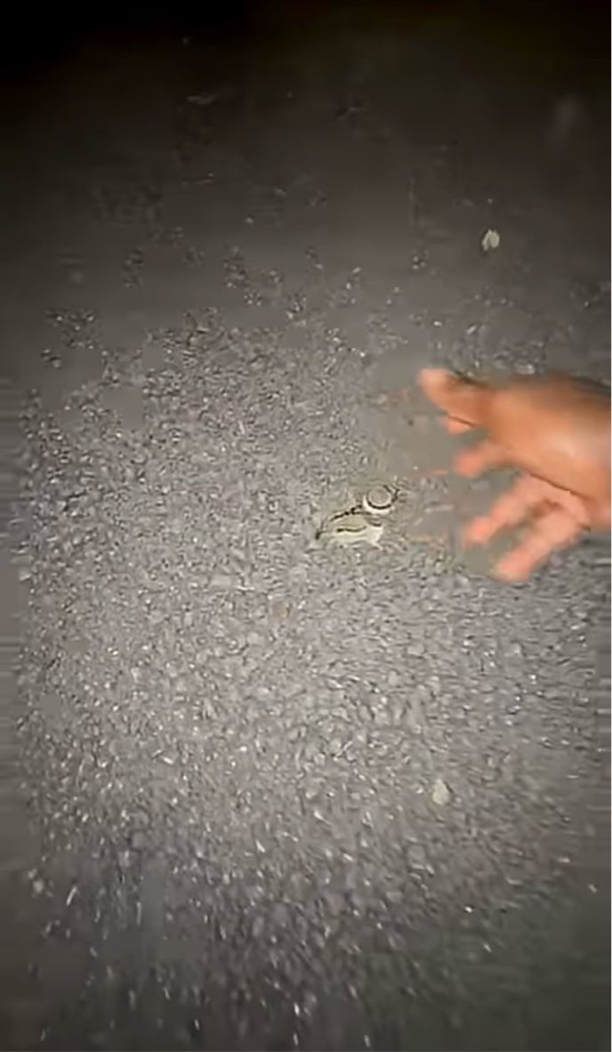動画の撮影場所は、アメリカ・ケンタッキー州。 夜遅くに散歩をしていた撮影者さんたちは、野生動物のピンチの場面に遭遇しました。