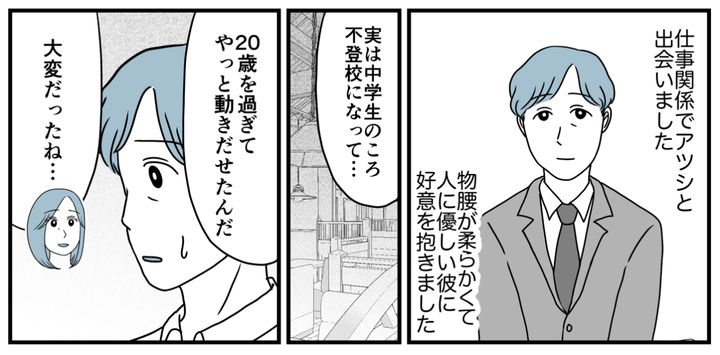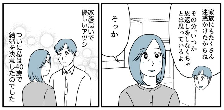 若い頃にはいろいろあったようですが、アツシの過去に何があったとしても私の気持ちが揺らぐことはありませんでした。むしろ人の痛みに寄り添うことができ、家族を大切にしているアツシに好感を抱いたのです。