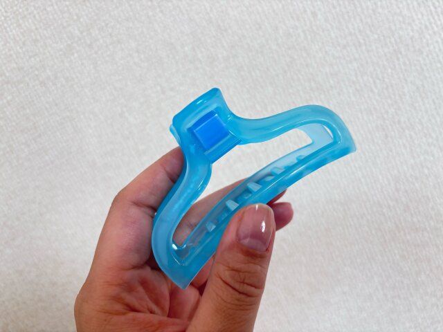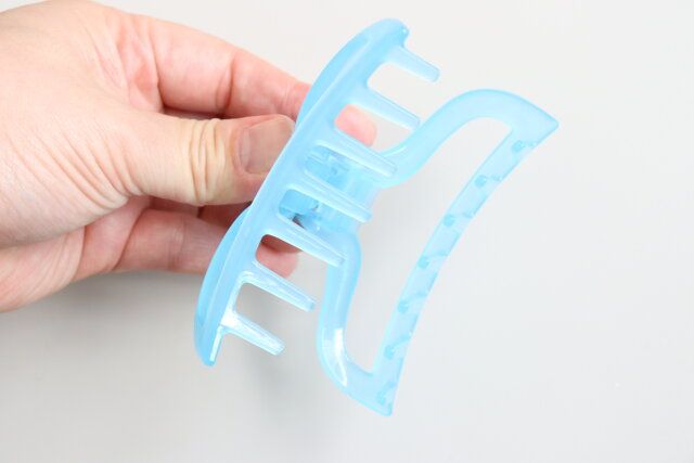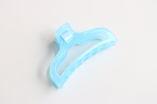 『色が変わるバンスクリップ(フレーム)』は夏っぽい水色のヘアクリップ。金具のない作りなので、海やプールなどの夏のレジャーや、お風呂に入っているときに髪をまとめるのに便利です。