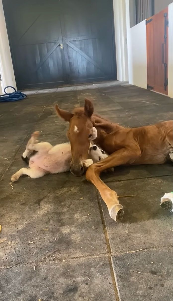 リハビリ中の子馬にできたやさしい遊び相手。お友達は・・フレンドリーな子犬!【海外・動画】
