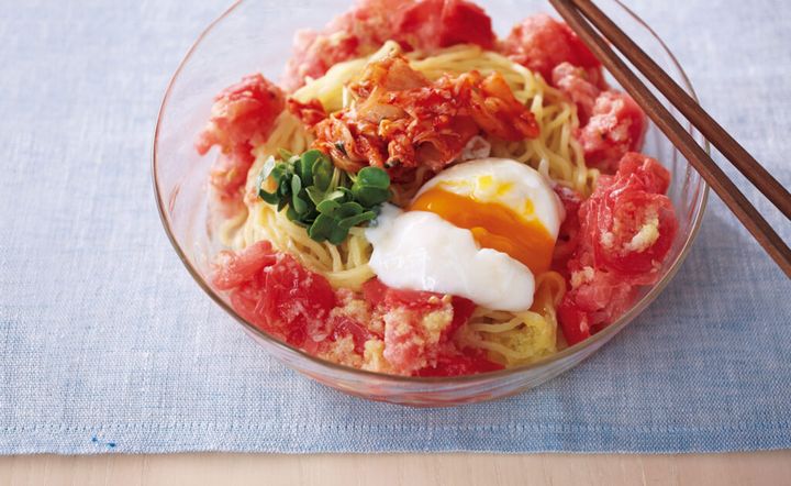 「冷凍トマト」で作る【冷製トマトのキムチあえ麺】のレシピ