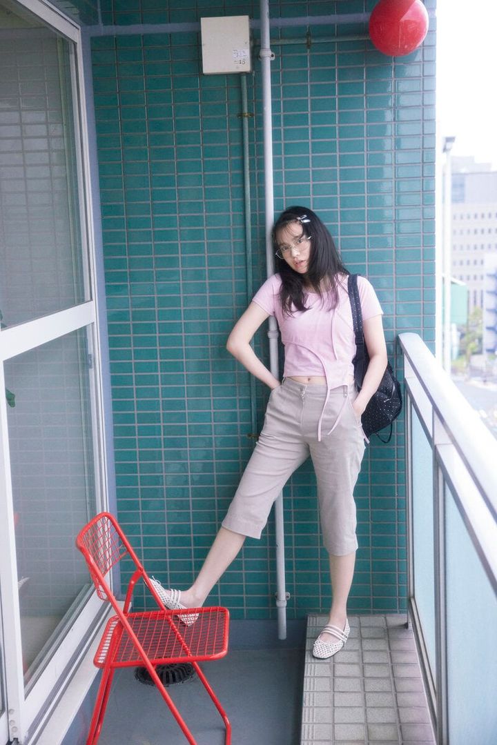 Tシャツ¥5,500/ラグア ジェム(バロックジャパンリミテッド)、メガネ¥4,400/ナディア フローレス エン エル コラソン、カプリパンツ¥11,660/ASU RA、バックパック¥15,800/YEOM IM(ともにハナ コリア)、ヘアクリップ[4個セット]¥2,750/heyep、ブレスレット¥1,820/NYUNYU(OneTree)、シューズ¥9,900/チャールズ&キース(チャールズ&キース ジャパン)