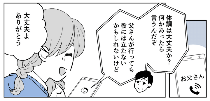 私の体調を心配してくれる父。いつも私の味方でいてくれると思える、とても心強い存在です。