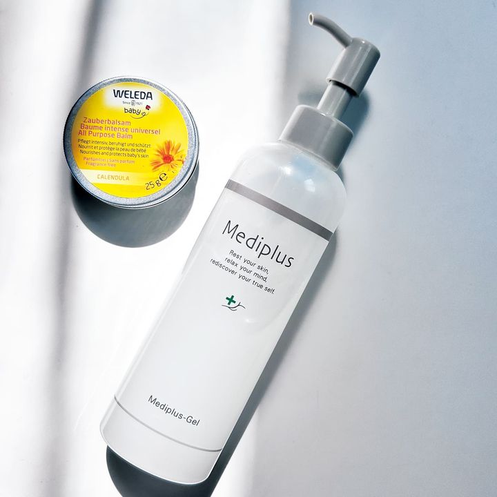 「乾燥しやすいハワイでは、高保湿アイテムでミニマルケアを。オフはItoguchiの全身用シャンプー(洗顔もOK)と、SISIの拭き取りクレンジング。オフ後はメディプラスのオールインワンとヴェレダのベビーマルチバームを全身に。タイパも完璧」