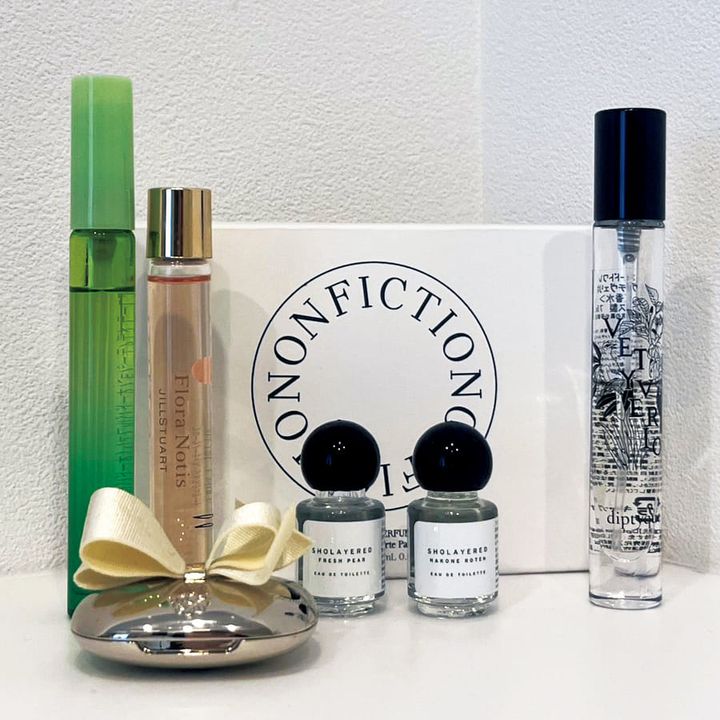 「エンビロン、タカミスキンピールのミニサイズのほか、デコルテAQのブライトニングセットも美白対策に。スキンケアでスぺパして、そのぶん旅先でも大好きな香りを満喫。ノンフィクションやフローラノーティス、ディプティックのほか、美ST付録のショーレイヤードのミニボトルもお気に入りです」