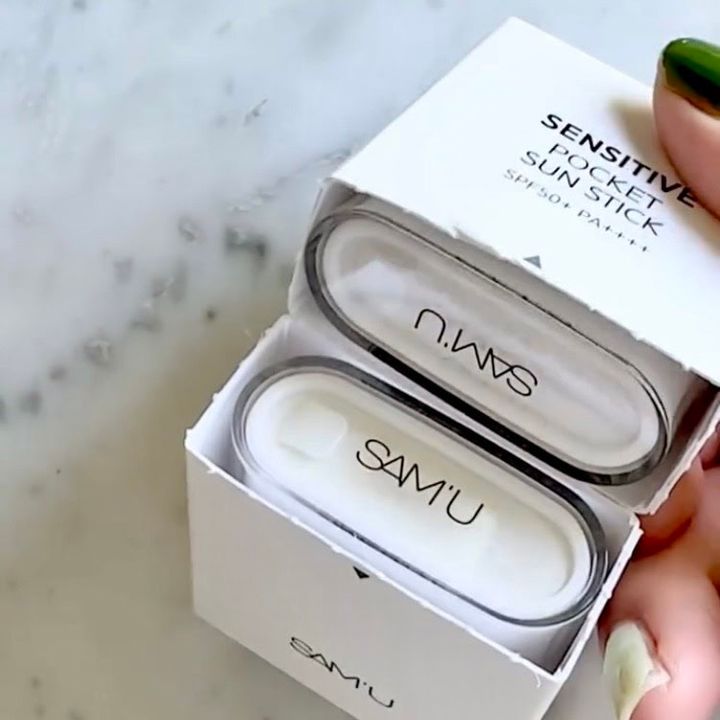 このシーズンはどうしてもUVケアが気になってしまいますが、また気になる子を見つけてしまったのでご紹介。韓国のスキンケアブランド「SAM’U(サミュ)」のスティックUVです。出先で手を汚さずサッと塗れるので、持ち歩きにはスティックUVを選ぶことが多いのですが、スティックタイプは少しかさばるんだよな〜と思っていたんです。でもこちらは、ポケットにすっぽり収まる10gのミニサイズ! お気に入りのMARKちゃんポーチに入れてみましたが、ファンデやリップ、折り畳みブラシと一緒に入れても余裕。