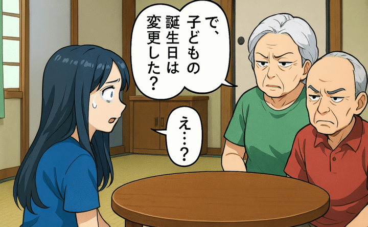 しかしその中で暗い顔が二つ。後日「話があるの」と義祖母に呼び出され、そこには義祖父もいました。そして「あなた、誕生日の変更はできたの?」とまさかのひと言。私は驚いて「え?」としか言えませんでした。なんと義祖父母は、次男の誕生日を変更しろと言ってきたのです。