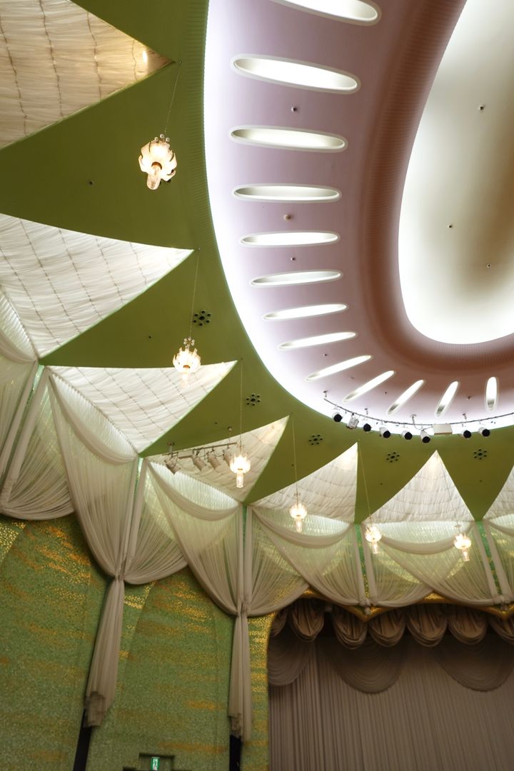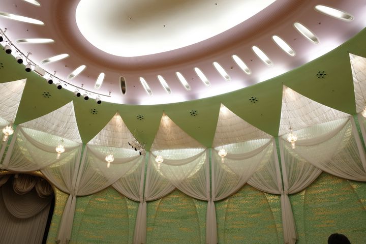 壁面には森林をイメージしたガラスモザイクがほどこされており、フロアはすべて板張り。レトロでおしゃれな会場でした✨