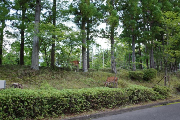 ホテルの庭園には緑が溢れており、運良く鹿にも会うことができました!