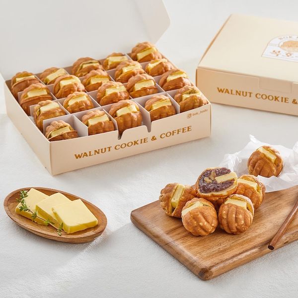 「ホドゥ(くるみ)カジャ」は、韓国で昔から親しまれているおやつ。小麦粉で作ったふんわりとした生地の中に、あんこと香ばしいくるみが詰まっている。日本の人形焼にそっくりで、素朴でどこか懐かしい甘さが特徴だ。