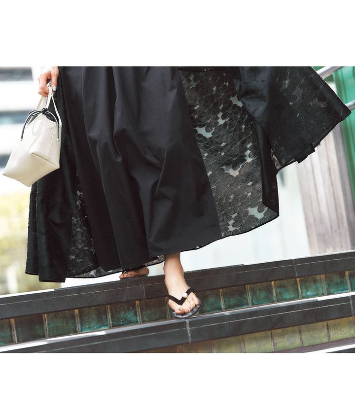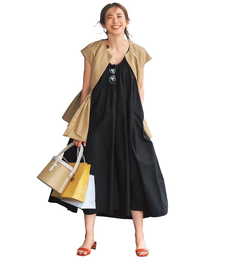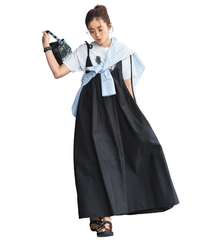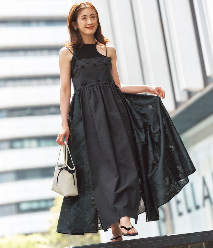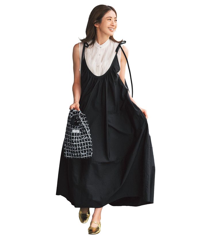 「黒の面積が多いと、威圧感が出てしまう……」を解決するには、ストラップワンピがおすすめ。威圧感、手抜き印象、マンネリ感……ネガティブ要素を和らげるならレイヤードが正解。カジュアルからきれいめまで、シーンに寄り添うアレンジに挑戦!