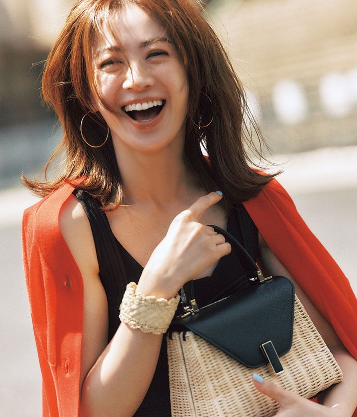 ワンピース¥39,600(サロン アダム エ ロペ)ジャケット¥24,970(FRAY I.D/FRAY I.D ルミネ新宿2店)バッグ¥33,000(ラシット/ラシット 西銀座店)サンダル¥59,400(ブレンテッラ/ハウス オブ ロータス)ブレスレット¥33,000チョーカー¥86,900〈ともにニナ・エ・ジュール〉チェーンネックレス¥33,000〈マッソーズアンドマッソーズ〉(すべてショールーム ロイト)