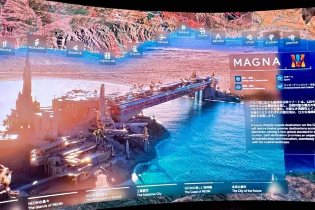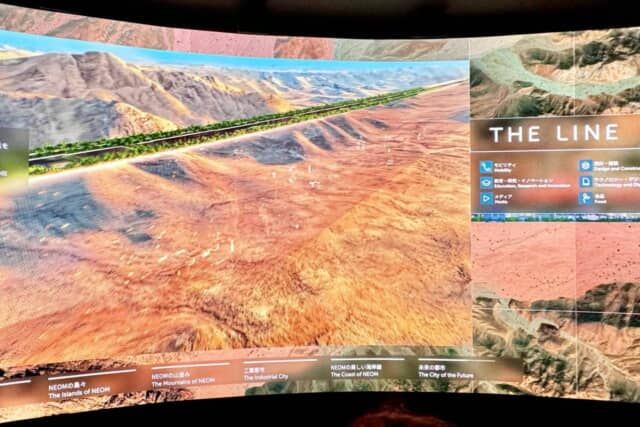 特に、サウジの巨大未来都市構想「NEOM(ネオム)」についての映像が上映され、自然環境や文化、最先端の研究まで幅広く学べます。未来志向の国家ビジョンを垣間見て「こんな暮らしが実現するのかも」と想像が膨らむこと間違いなし。