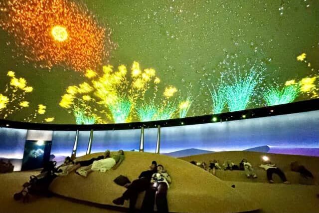 最後はクウェートの未来を映す映像が広がり、まるでプラネタリウムのように寝転んで星空を見上げる演出も楽しめます。