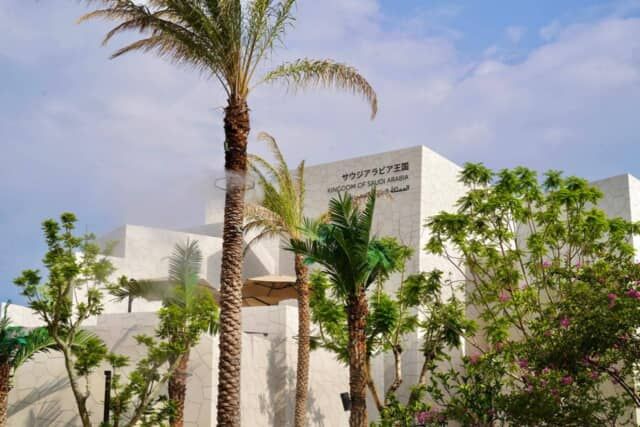 サウジアラビア館は、入り口を進むと本物さながらのヤシの木や伝統的な街並みが広がり、まるで異国に来たようなエキゾチックな雰囲気を感じます。