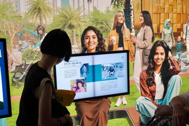 展示では、厳しい砂漠環境で培われた知恵や再生可能エネルギー、水資源管理への取り組み、女性の社会進出についてなどが紹介され、中東ならではのサステナブルな未来ビジョンが学べます。