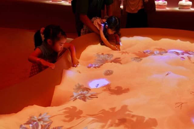 また、光る砂を掘り進めると何かが見つかる仕掛けに大人も子どももワクワク。滑り台も設置されていて、子ども心をくすぐる遊び心たっぷりです。