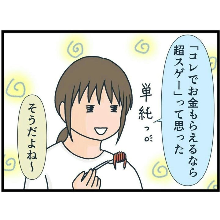 ナエくまさんが紹介されたバイトは、なんと「登録料」が必要で、「クーリングオフ」ができるというもの。一見すると仕事の話のようでいて、実際には有料会員の勧誘のようにも思える内容でした。説明に違和感を覚えながらも、「友人の紹介だから大丈夫だろう」という信頼感が勝ってしまい、結局登録料を支払ってしまったそうです。