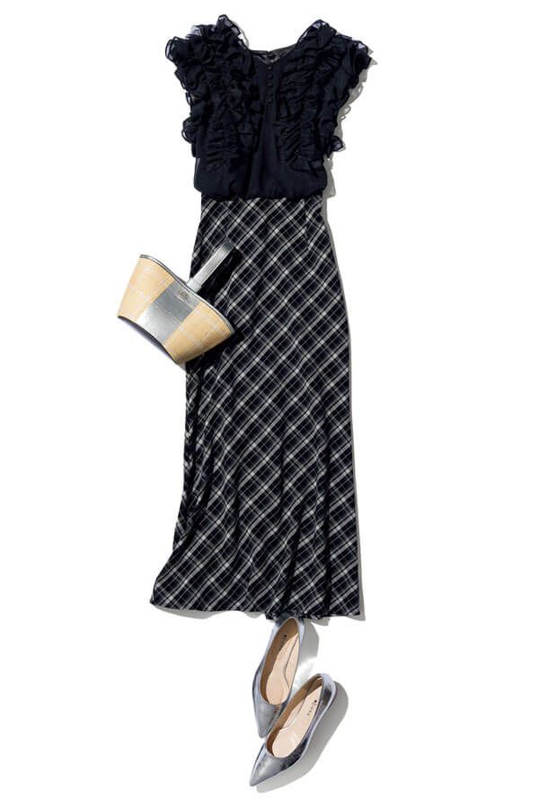 ブラウス¥10,890/Swingle(Swingle 有楽町マルイ店) スカート¥14,300/MERCURYDUO バッグ¥17,600/エルサック(アンソロジー) 靴¥16,500/ダイアナ(ダイアナ 銀座本店)