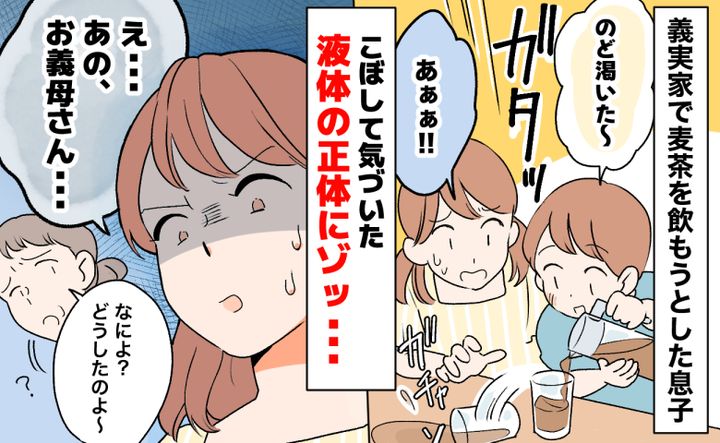 3. 「こぼしてよかった…」義実家で麦茶を飲もうとした息子。中身をこぼしてゾッ…麦茶にしか見えないのに