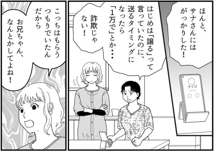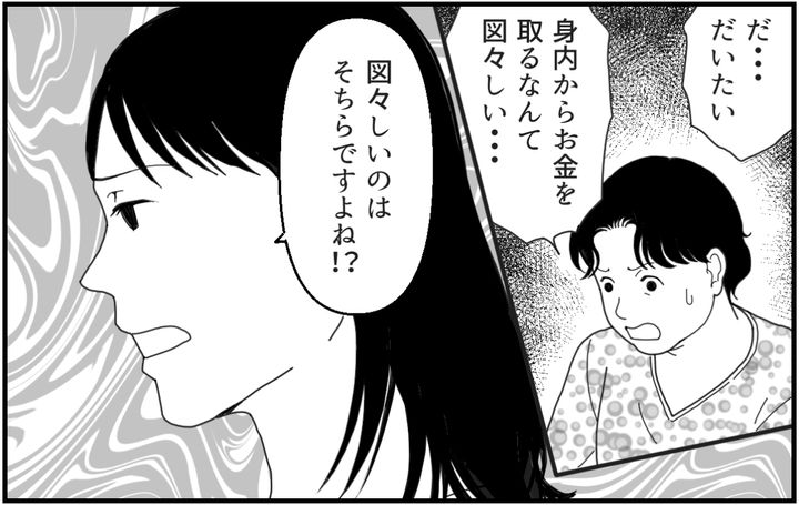 ヒートアップした私と母は「詐欺じゃん」「なんて強欲な人」などと、義姉に対して少々言いすぎてしまったかもしれません。だけどこちらは後からお金を要求されてだまされたような感覚だったし、身内からお金を取る感覚はおかしいということを分かってもらいたかったのです。