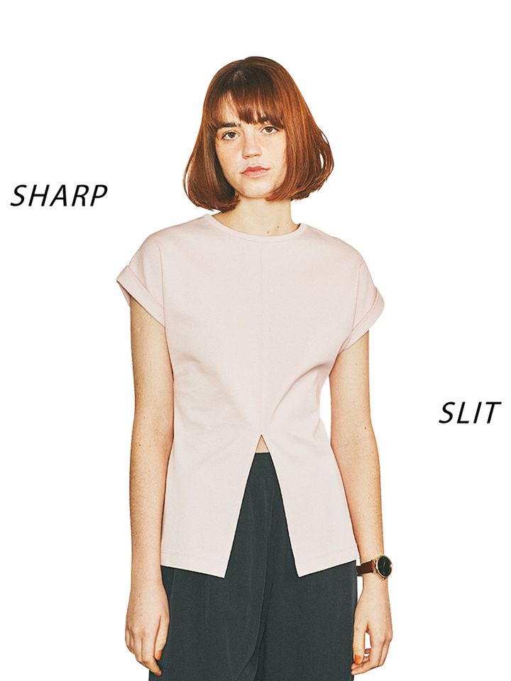 ロールアップしたスリーブでタイトなシルエットに立体感をプラス。適度な肉感のあるなめらかな素材はボディラインを拾いにくく、縦長ラインをいっそう美しくまとえる。UVカット、接触冷感効果もあり。 ピンクダブルフェイストップス/uncrave
