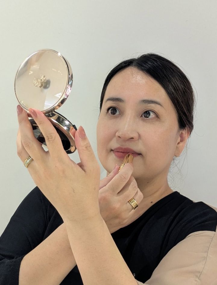 「汗をかいてメイク崩れが気になるときや時間が経ったときに、小鼻まわりと頬、目の下に軽く塗布するだけで上品な肌になります。これからの季節はとくに必須アイテムです」