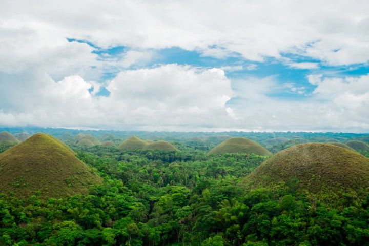 「チョコレートヒルズ」は、ボホール島のほぼ中心に位置する円錐形の小丘群。