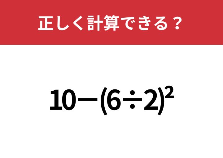 どうやって計算するのかわかる?「10−(6÷2)^2」正しく計算できる?