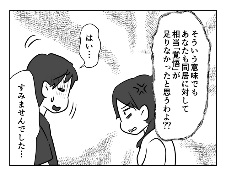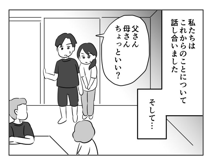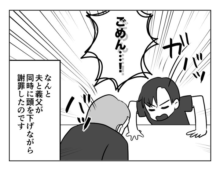 お互いに話があると言った義両親とリュウさん夫婦。謝った先にあるものは、きっと「同居解消」でしょう。まぁ片方だけが同居の解消を主張するのではなく、双方で同居を解消したいと願うのであれば、好都合ですね。ただ双方がそう思うのであれば、同居前にもっと先のことを想定していろいろ話し合っておけばよかったのではないか……と思ってしまいます。一番の被害者は環境がコロコロ変わってしまう子どもたち。どうかこれからは子どもたちの気持ちを第一に考えて、行動してもらいたいところです。