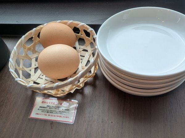 そしてなんと、サービスでひとりに1個生卵がいただけます。こちらはラーメンに入れてもいいですし、ライスを注文して卵かけご飯にするのもおすすめとのことですよ。
