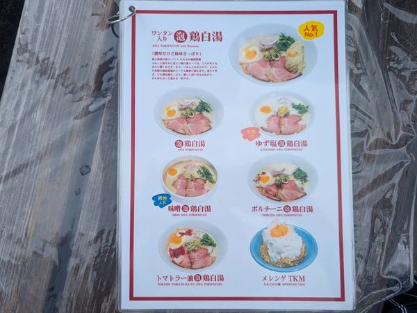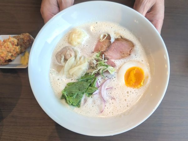 人気ナンバー1のラーメンで泡鶏白湯に食べ応えのあるワンタンが入っています。ボリュームがほしいならこちらがおすすめです。