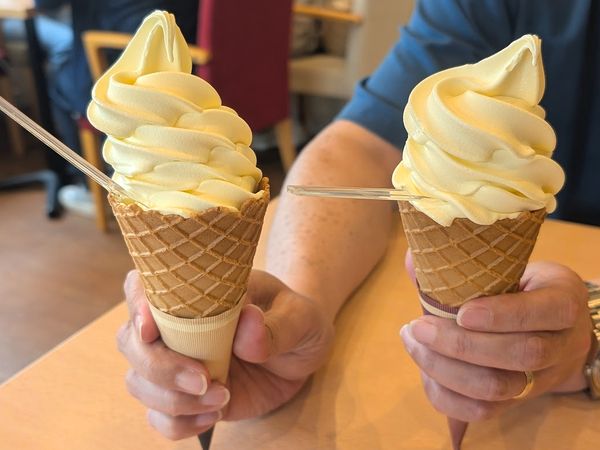 ラーメンを食べると、となりのコッコテラスで利用できる『たまごソフト10%オフ』の割引券をいただけます。ほとんどの方がこのたまごソフトも食べていましたよ。