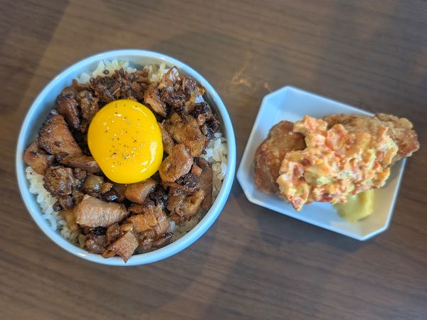 サイドメニューですが数量限定なので、残ってたらラッキーと言われるほどの人気商品。細かくカットされているチャーシューがむしろ食べやすいです。もともと生卵がのっていますが、しっかり味のチャーシューなのでサービスの生卵を追加でのせるとさらにまろやかになり、また違った味わいを楽しめます。