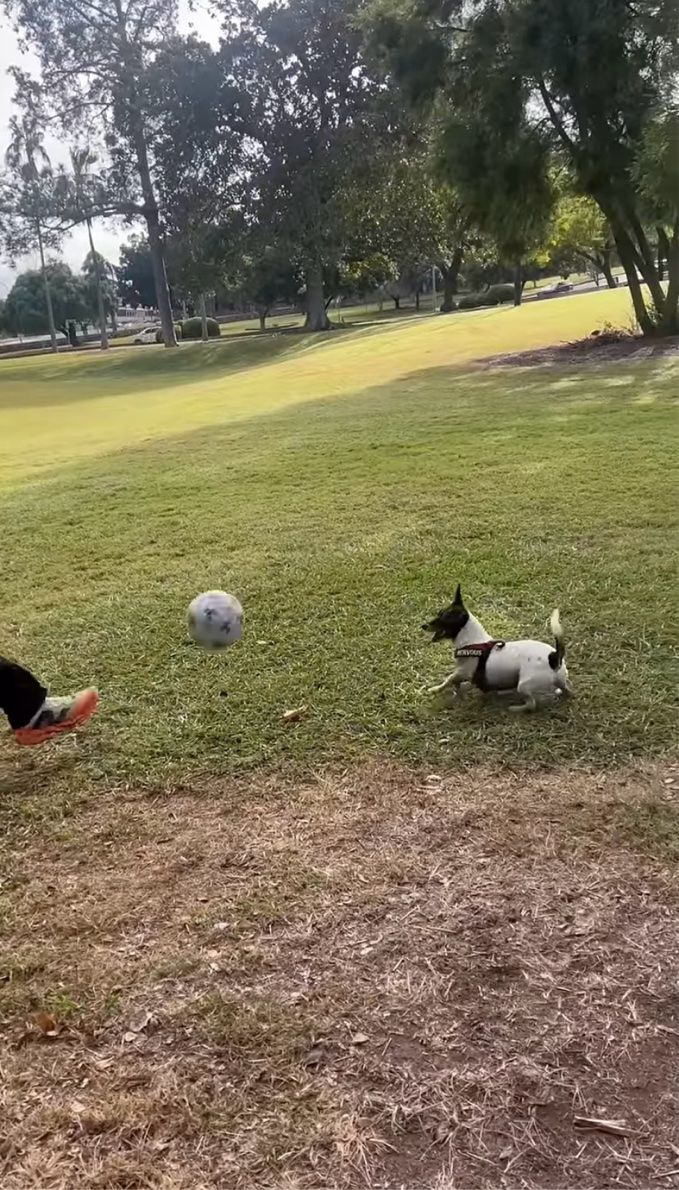 飼い主さんがサッカーボールを蹴ると・・・。 8歳のミニチュア・フォックス・テリア『ジェイミー・フォックス』が瞬時に反応!