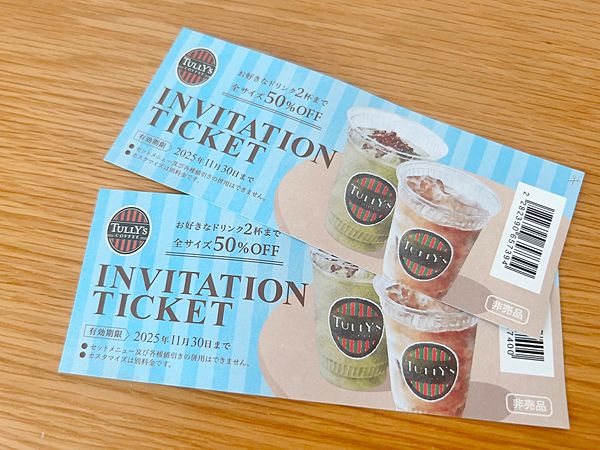 タリーズのインビテーションチケットは、好きなドリンク2杯までを50%OFFで購入できるチケット。値段に上限がないので、私はついつい高いドリンクを注文しがちです。