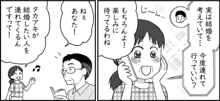 夫は仕事一筋で生きてきた人で、家族に関しては無関心というか少し冷淡な面があります。タカアキの年齢さえはっきり覚えていないし、結婚相手についてもどうでもいいといった感じ。けれど私は嬉しくてたまりませんでした。