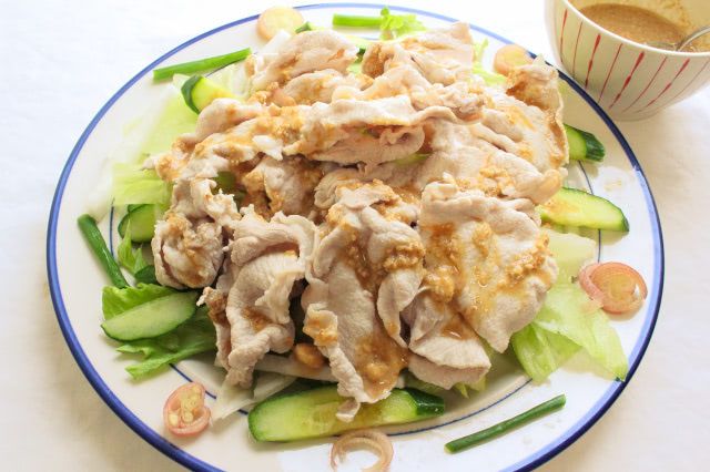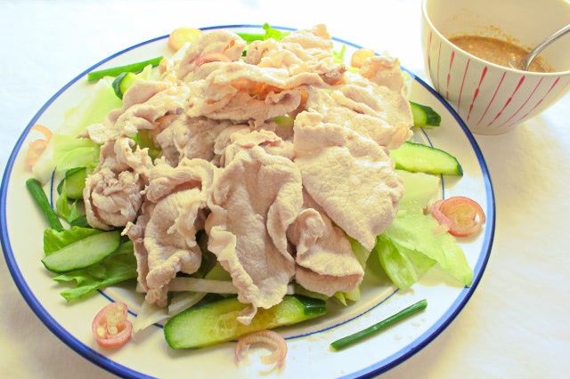 しゃぶしゃぶした豚肉とサラダを組み合わせる、見た目は一般的な冷しゃぶと同じような作り方と盛り付けですが、食べてみると、筆者がいつも作る冷しゃぶとはひと味違う、料理上手な冷しゃぶに仕上がりました♪