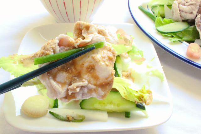 豚肉は火を止めたお湯で茹でたあと、水にはさらさず常温で冷ますことで、硬くならず、旨味もしっかり残っていて、おいしさが格段にアップしましたよ。