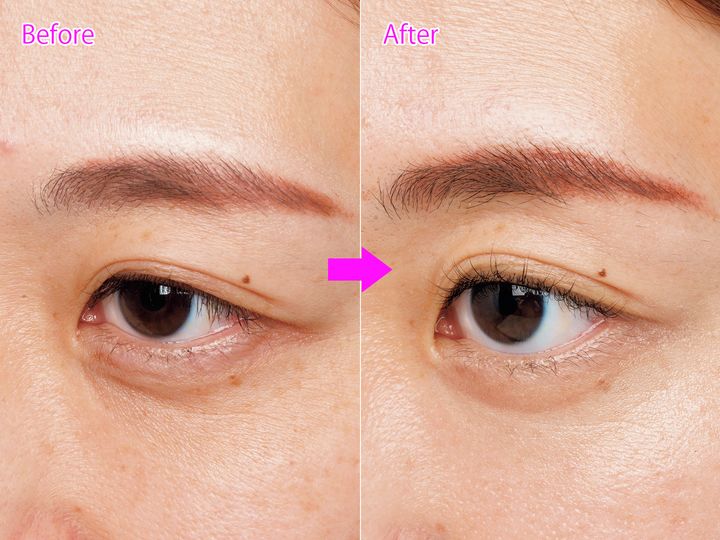 目の周りにハリが出て、全体的にトーンアップ。目の下のくすみ&クマが消え、プリッとキレイな涙袋が爆誕。
