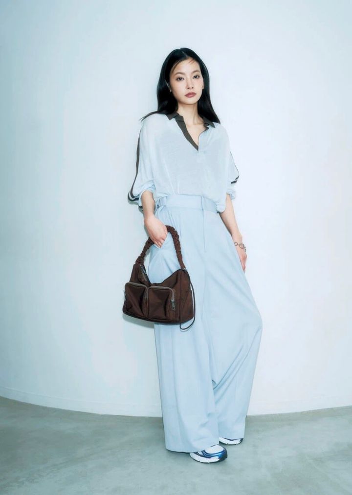抜け感のあるワイドパンツをあわせてリラクシーなムードに