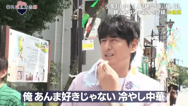 この日の小田原は酷暑に見舞われ、華丸のシャツは汗でぐっしょり、大吉は滴る汗をてぬぐいでぬぐい続けている。「さすがにこの俺でも、今日は冷たい麺やね。冷やし中華やない?」と華丸が提案すると、大吉が「俺 あんま好きじゃないのよ 冷やし中華」と打ち明ける。華丸が「これは初耳学です!」と驚きの表情に。