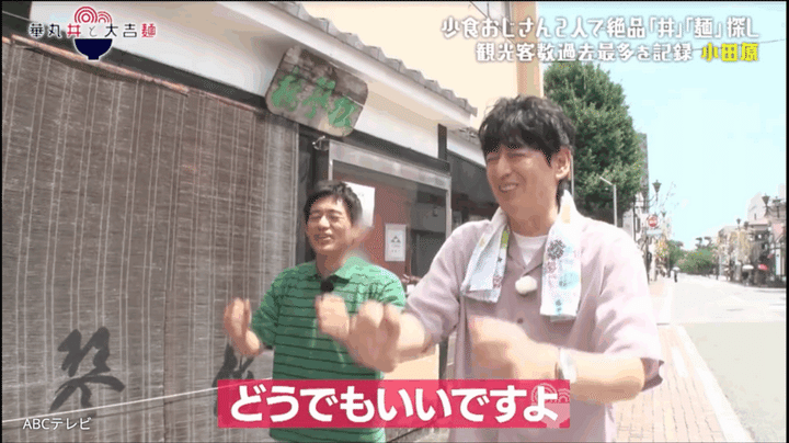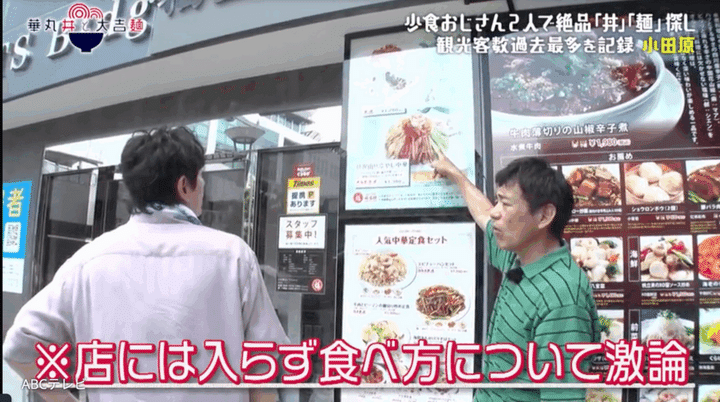 少食おじさんの博多華丸・大吉が、ただただ食べたい丼か麺を探し求める街ブラ番組『華丸丼と大吉麺』(ABCテレビ)。1時間スペシャルで小田原を訪れた2人の間で、冷やし中華論争が勃発した。