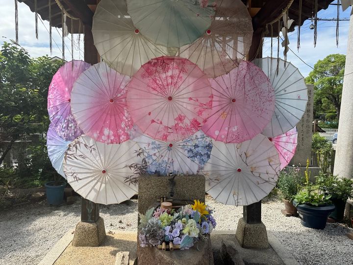 華やかな傘が飾られている手水舎も、おすすめのフォトスポットです♪