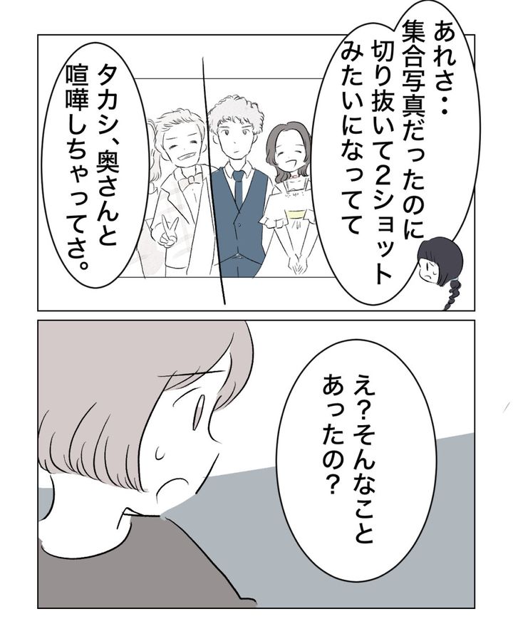 コミュ力も高く人当たりがいいルナさん。幼稚園のイベントも積極的で周りからも評判がいいところもありました。写真を人件費と言って割高で売ったり、ご祝儀が空っぽだったり・・・リオさんは「なんだろ、モヤるけど、我慢できるギリギリのラインを突いてくるんだよね。」となんとも言えない様子でした。そんな話をしているとアオイさんはリオさんの結婚式での出来事を思い出し「リオの結婚式の時ルナまだ独身だったじゃん」と話し始めました。するとホノカさんも「あっ!ドレス!?」と思い出します。アオイさんは「そうそう。本人はベージュって言い張ってたけど。いいの?って確かになったし、本人のSNSでもちょっとザワついたよね。」と言いました。