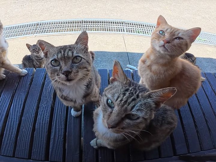 外を見たら猫がずらり! 窓の外で待つモフモフたちに心がゆるむ
